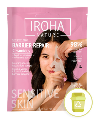 Facial mask with Ceramides that deeply moisturizes and repairs the skin barrier. Together with the rest of the ingredients, Peptides, Probiotics and Hyaluronic Acid, they nourish, retain water in the dermis, soothe redness and irritation and balance the microbiota. Ideal for all skin types, especially sensitive, dry and dehydrated skin with a weakened barrier.