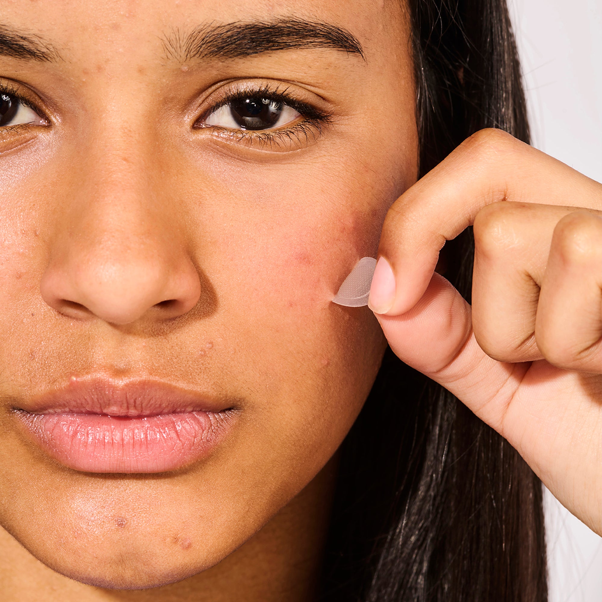 Separar la película protectora y colocar el parche sobre el grano/ imperfección a tratar.