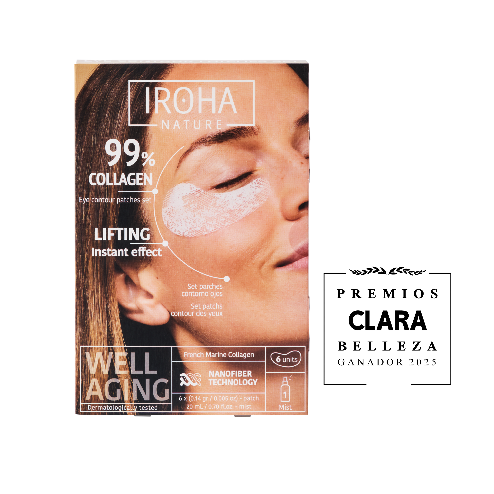 El Parche con 99 % de Colágeno utiliza la avanzada tecnología de Electrospinning junto con una bruma activadora que, al aplicarse, disuelve la estructura de nanofibras de colágeno, permitiendo su liberación directa en las capas más profundas de la piel. El colágeno marino de origen francés proporciona un efecto lifting instantáneo, mientras que el colágeno hidrolizado actúa desde el interior, favoreciendo la producción natural de colágeno, mejorando la elasticidad y suavizando líneas de expresión. La bruma complementaria, enriquecida con ácido hialurónico, niacinamida y centella asiática, intensifica la hidratación, calma la piel y fortalece la barrera cutánea, maximizando los beneficios del tratamiento.