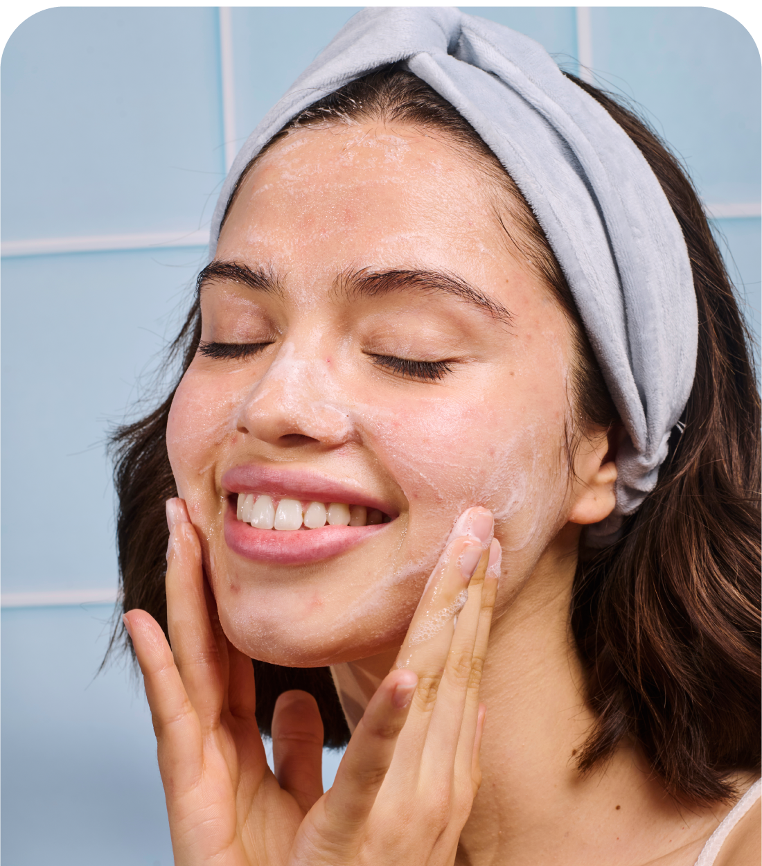 1. Moisture skin and apply a small amount of cleanser to the face using gentle and circular movements.