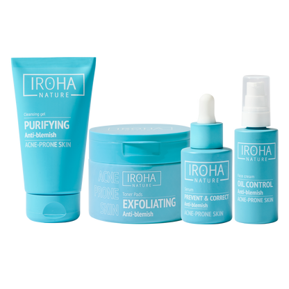 Take care of your skin with the Complete Anti-Acne Routine Pack: a routine designed to help prevent and combat spots and blemishes, reduce post-acne marks and strengthen the skin barrier . This pack includes four products (cleanser, toner, serum and cream) carefully formulated to meet the needs of acne-prone skin.