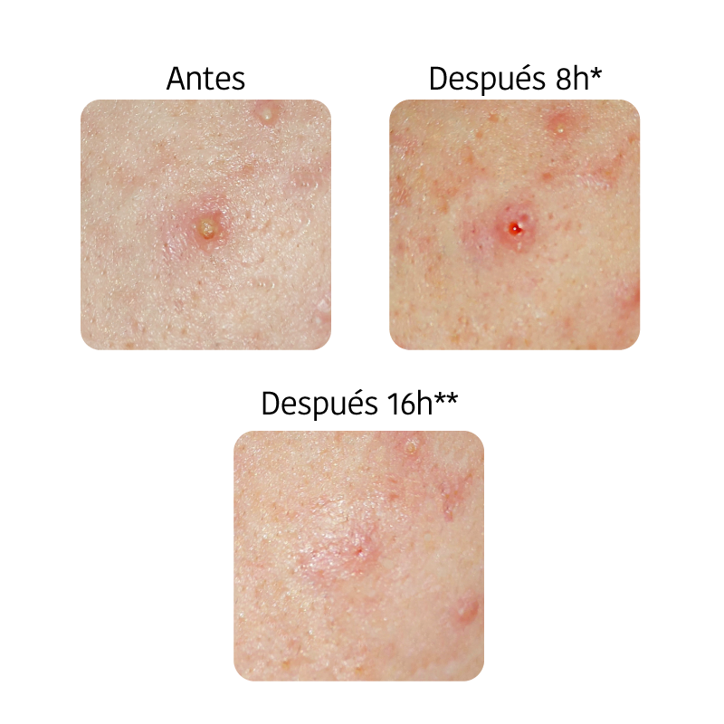 grano: menos inflamado, menos rojo, menos visible y más cicatrizado***