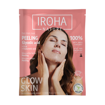 Mascarilla facial exfoliante enriquecida con Ácido Glicólico que aporta una exfoliación suave a la piel eliminando las células muertas, restos de maquillaje e impurezas de las capas más externas de la superficie cutánea dando como resultado una piel de aspecto más luminoso, joven y saludable. Además, esta mascarilla tisú contiene centella asiática, conocida por sus propiedades calmantes y regenerativas, dejando la piel más suave y luminosa. Por último, el ácido hialurónico se encarga de aportar una hidratación y suavidad instantánea.