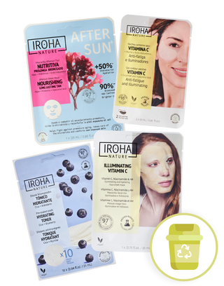 Nuestras mascarillas presentan un tejido tisú que es 100% biodegradables y están hechas de algodón y eucalipto procedentes de bosques sostenibles. Este tejido biodegradable ofrece un excelente sistema para una óptima penetración de los activos y los mejores resultados, a la vez que respetan el medio ambiente, ya que se degradan en el suelo en tan solo 75 días sin dejar huella en el ecosistema si se reciclan en el contenedor orgánico.